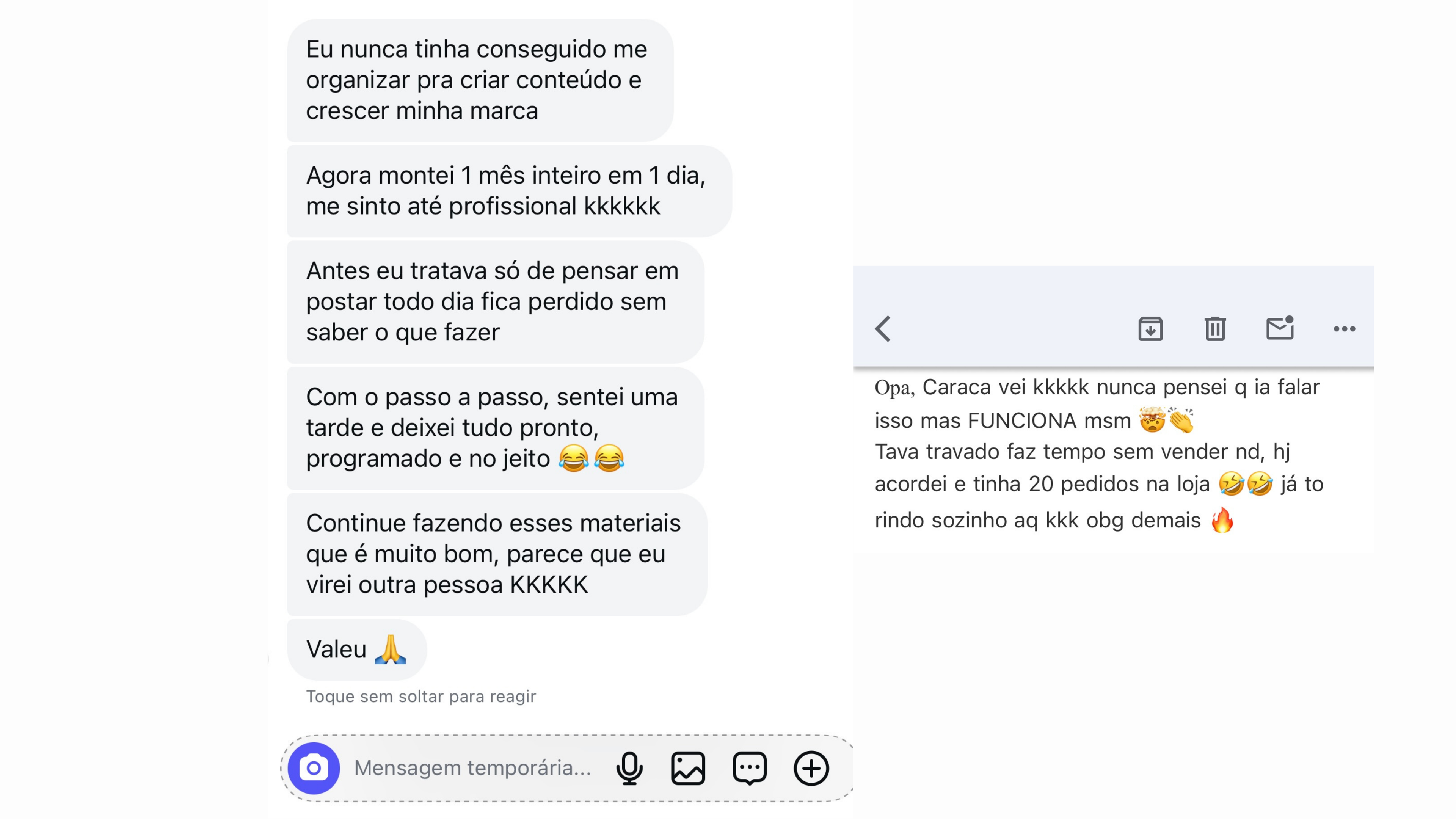 - Resultados rápidos: seguindo o roteiro, em até 30 dias você já percebe mudanças claras nas suas vendas.