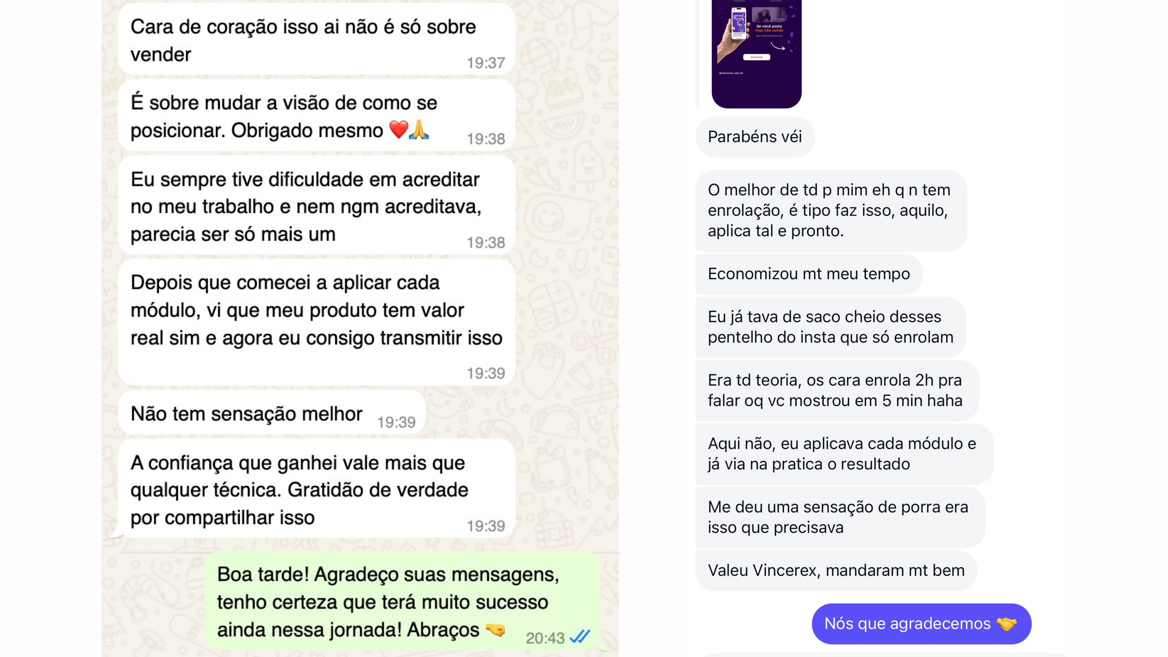 Encantado pela estratégia, decidi ir além: criei materiais e métodos para ajudar outras pessoas a conquistar resultados reais, rápidos e duradouros. Pessoas comuns, como eu, que pararam de vender apenas um produto e começaram a vender algo inesquecível.